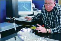 有十年的時(shí)間,A & M公司采用一臺(tái)手動(dòng)測量機(jī)完成有嚴(yán)格公差要求的工件。無論如何,采用手動(dòng)的方法進(jìn)行計(jì)量工作是一件非常費(fèi)時(shí)的檢測方法。對(duì)于一些這樣的工件,需要檢測上百個(gè)點(diǎn)---對(duì)于手動(dòng)測量機(jī)來說,明顯不能有效完成任務(wù)。