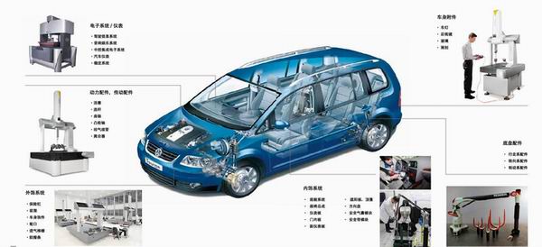 汽車零部件具有品質要求高、批量大、形狀各異的特點。根據(jù)不同的零部件特征與測量類型,主要分為箱體、復雜形狀和曲線曲面三類;按照從材料和加工工藝來分,零部件可以分為薄壁件、機加件、管件、軟質件和電子類部件。根據(jù)不同種類零部件不同特征類型的不同檢測需求,可選擇不同的方案。