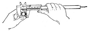 (2) 游標(biāo)卡尺的握持方法:測量時,右手拿住尺身,大拇指移動游標(biāo),左手拿待測外徑(或內(nèi)徑)的物體,使待測物位于外測量爪之間,當(dāng)與量爪略帶磨擦力相貼時,即可讀數(shù)。