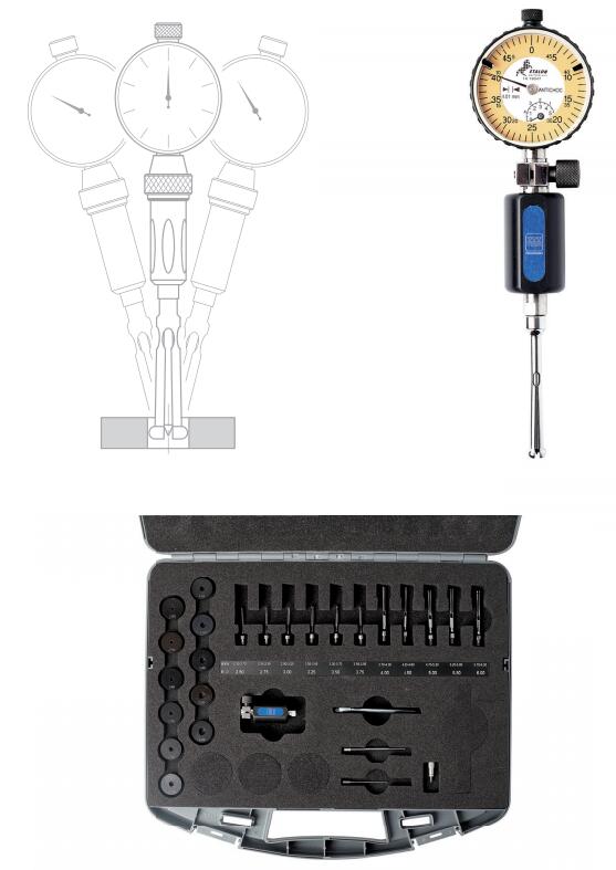 專為從0.47到12.6mm的小孔測量設(shè)計(jì)的孔徑量具,通過一點(diǎn)測量,不但能測量尺寸而且可以判定形狀偏差,具有出色的重復(fù)性。此類測量工具具有可互換的測量頭,內(nèi)部有針形桿和夾持桿,它帶直徑為8mm的安裝孔,可安裝指示表或其它傳感器。