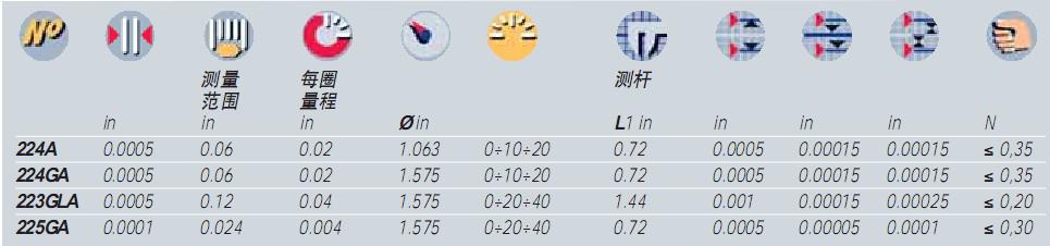 COMPAC 240系列,標(biāo)準(zhǔn)型號(hào)TESA杠桿指示表(英制) |