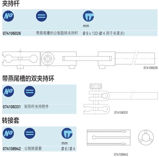 ● 帶燕尾安裝座的整體外殼,同時還有4mm的可旋轉(zhuǎn)夾持桿。