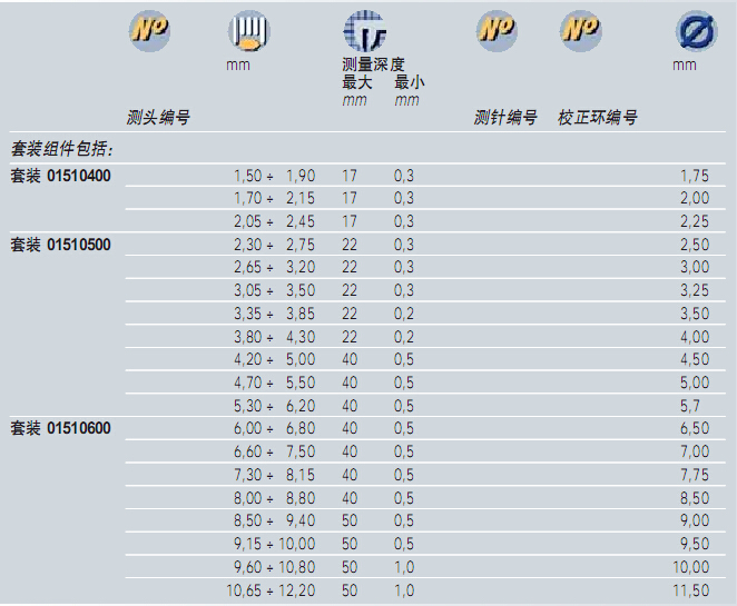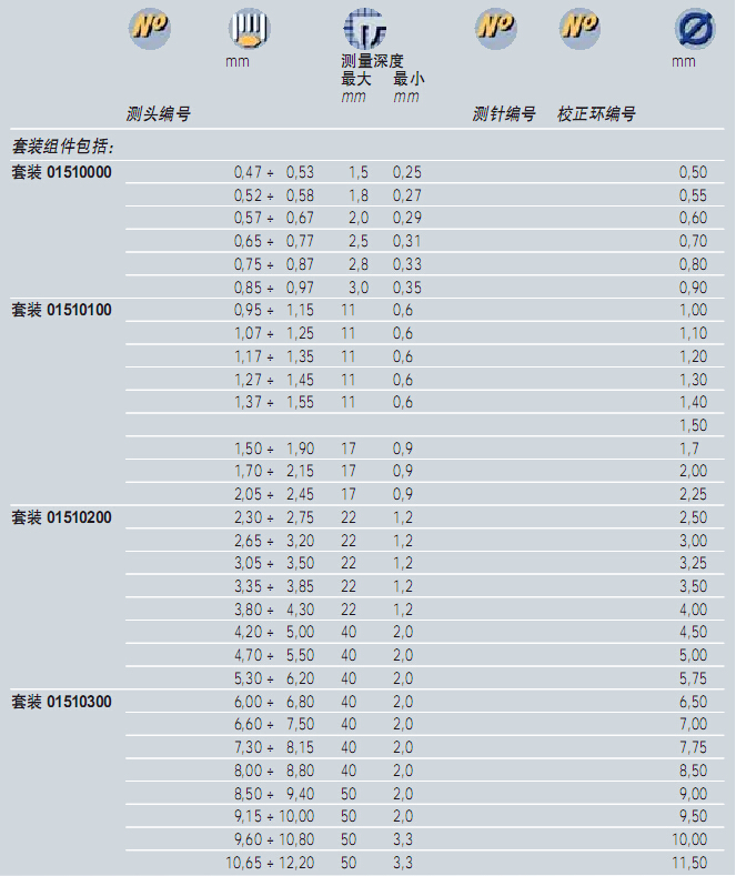用于盲孔或短臺(tái)階孔測(cè)量用的完整套裝