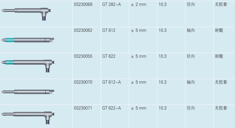 標(biāo)準(zhǔn)測頭(帶軸向纜線的GT 212測頭)
