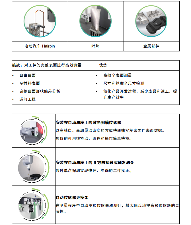 分度測(cè)座可確保傳感器始終與被測(cè)工件表面保持較佳對(duì)準(zhǔn),而自動(dòng)傳感器更換架可在測(cè)量程序中實(shí)現(xiàn)激光傳感器與其他接觸式傳感器或光學(xué)傳感器的全自動(dòng)交換。